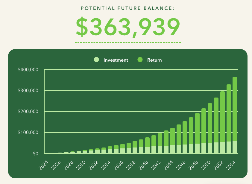 Whether its rent you earn from a studio in JLT or dividend paying securities or fractional earnings through our DIFC neighbors at GetStake, a 6-7% income yield means this potential future balance will pay you a steady $2,150 a month in retirement income - enough to retire on a comfy sunny beach 🏖️, powered by your spare change.